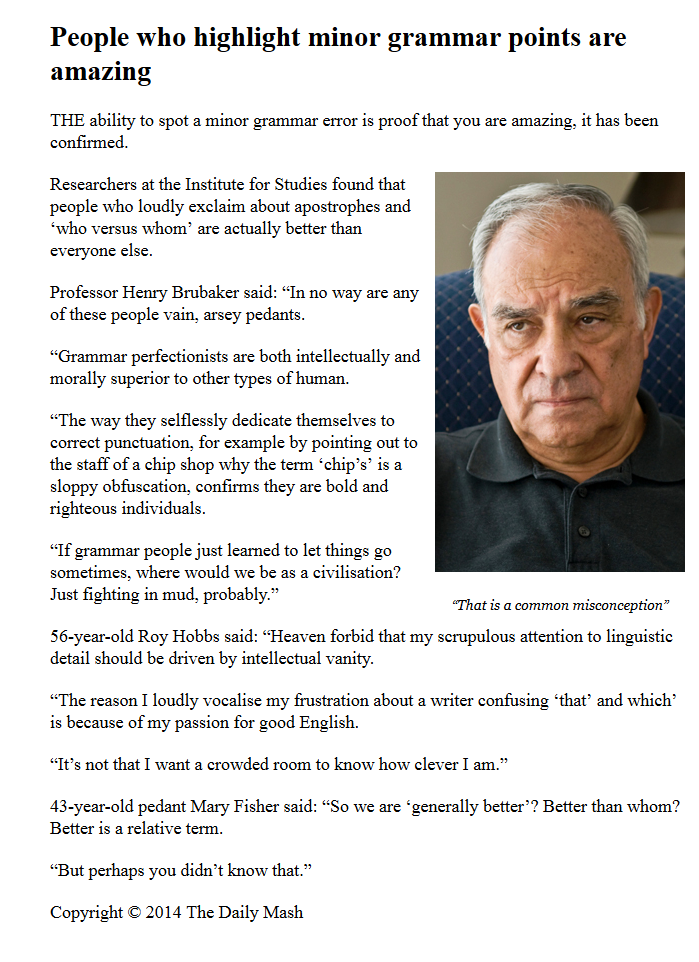 Much has been written about the Second World War, including Hitler’s evident lack of linguistic finesse. Therefore, I will do some pondering only, on the British who want to be grammar nazis. ■→The Daily Mash offers a few observations.