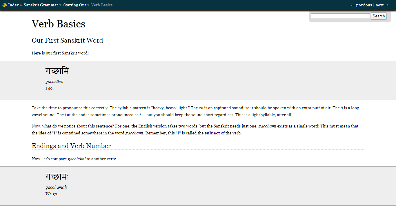 Eskimos have plenty of words for snow, but they have snowfall. Let us compare Sanskrit and a flexional language as Polish: is all the Sanskrit descriptive sophistry necessary, if the tongue simply uses flexion? “Our First Sanskrit Word” online turns out to be,