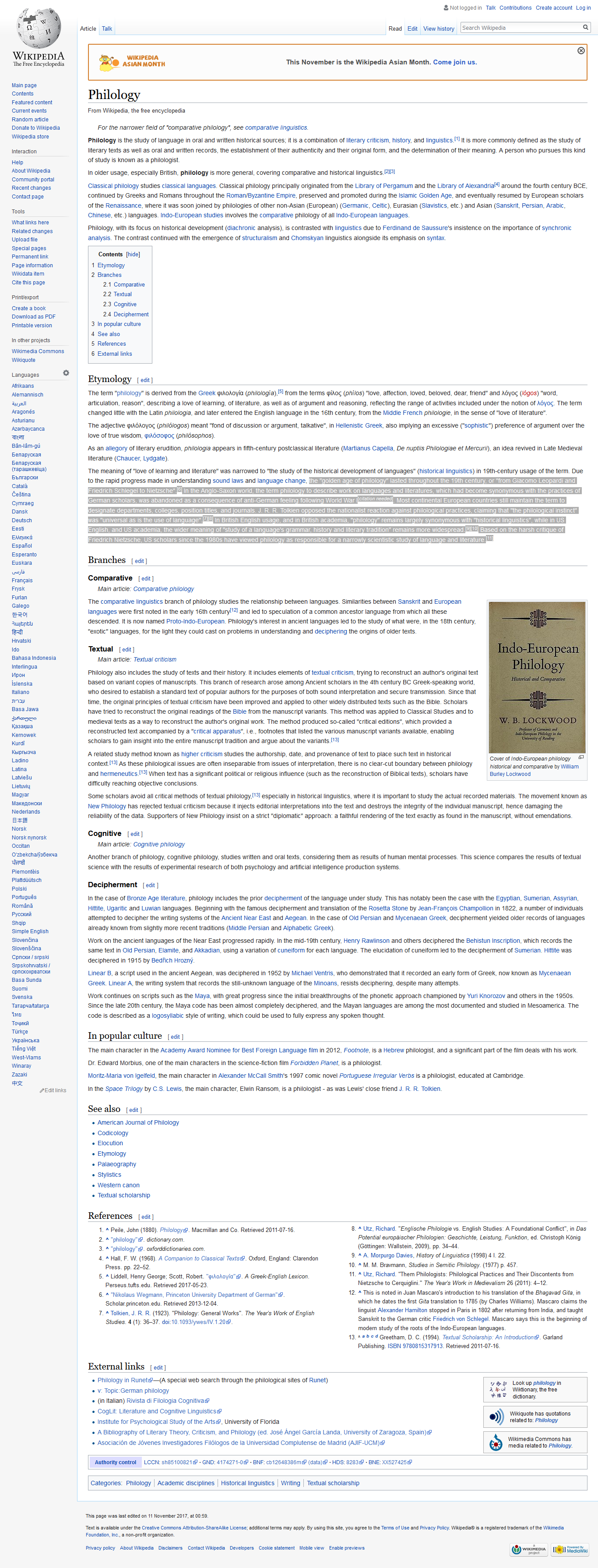 J. R. R. Tolkien wrote “the philological instinct” was “universal as is the use of language”. Wikipedia, Tolkien, J. R. R. (1923). “Philology: General Works”. The Year’s Work of English Studies. 4 (1): 36–37. ■doi:10.1093/ywes/IV.1.20.