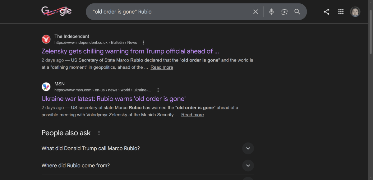 In politics today, the Independent, co.uk, would fancy US Secretary of State Rubio as saying, “old order is gone”, whereas he clearly says “the old world is gone”. Why the fancy?