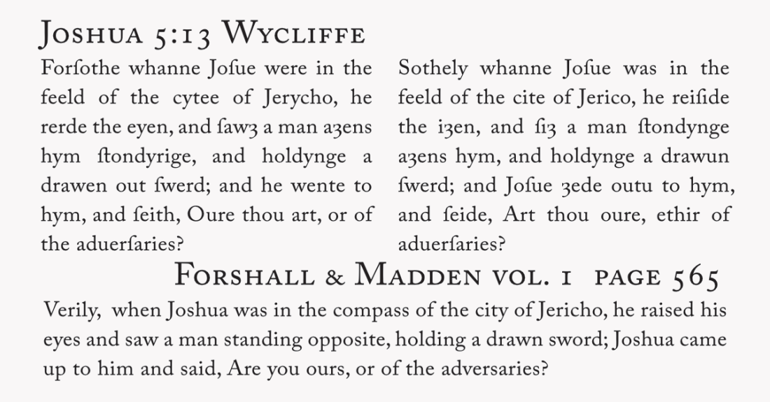 Verily, when Joshua was in the compass of the city of Jericho, he raised his eyes and saw a man standing opposite, holding a drawn sword; Joshua came up to him and said, Are you ours, or of the adversaries? ■More