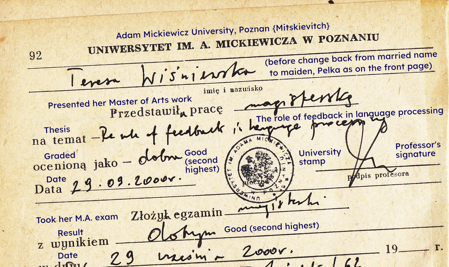 Grading at the time: very good, good, sufficient, fail (5, 4, 3, 0).